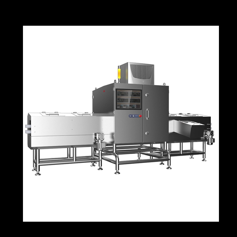 Эта машина может обнаруживать металлические загрязнения, стекло, камень, твердый пластик в запечатанных банках, стеклянных бутылках.