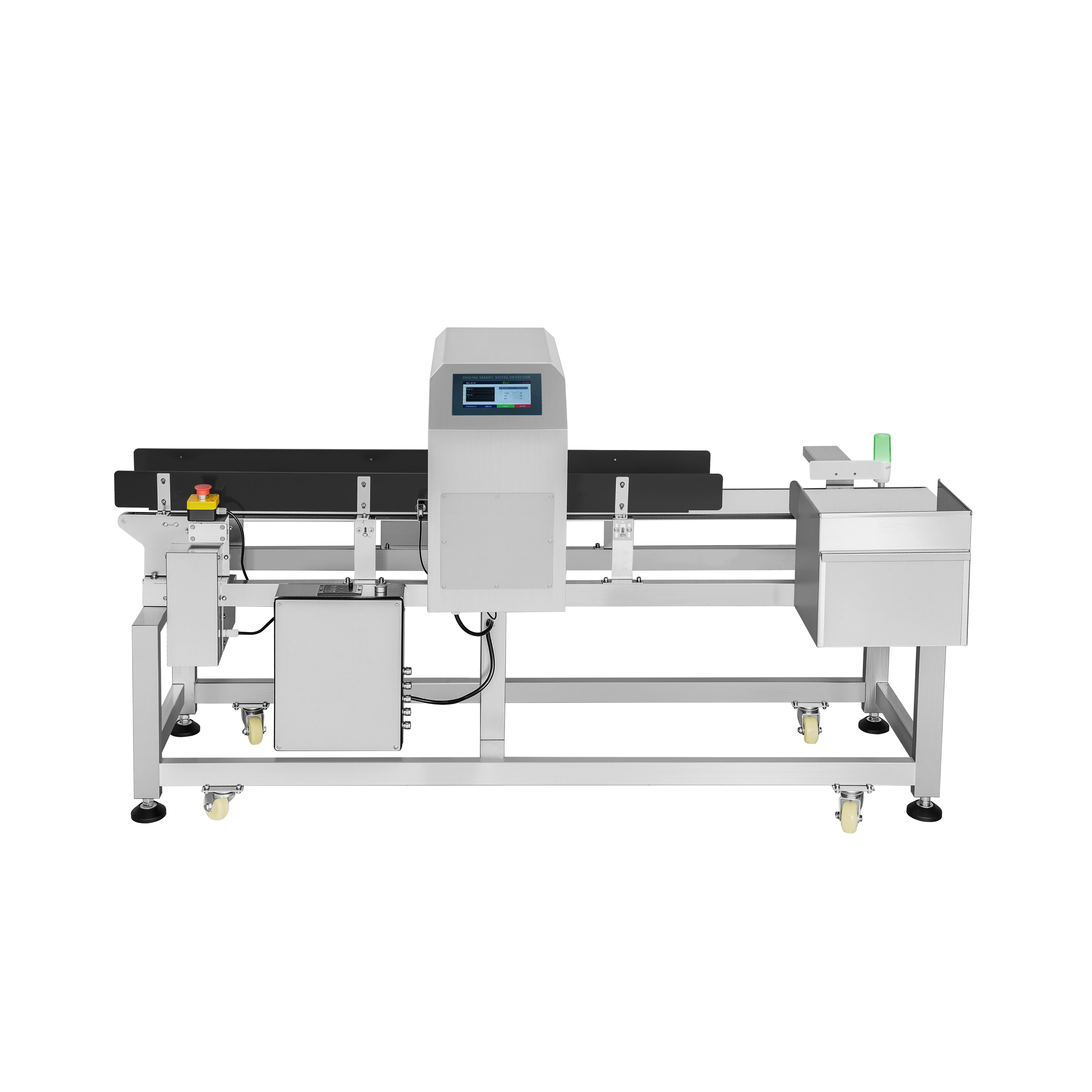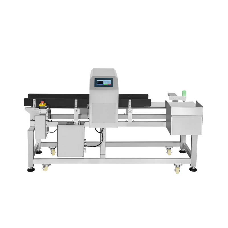 Металлоискатель может обнаруживать различные металлические загрязнения, такие как железо, медь, алюминий и нержавеющая сталь, смешанные в сырье. Отбрасывание толкателя подходит для продуктов средней упаковки, таких как карманные салфетки, салфетки для лица в коробке, маленькая коробочка с порошком, или другие пакеты, подобные этому.