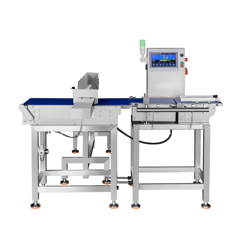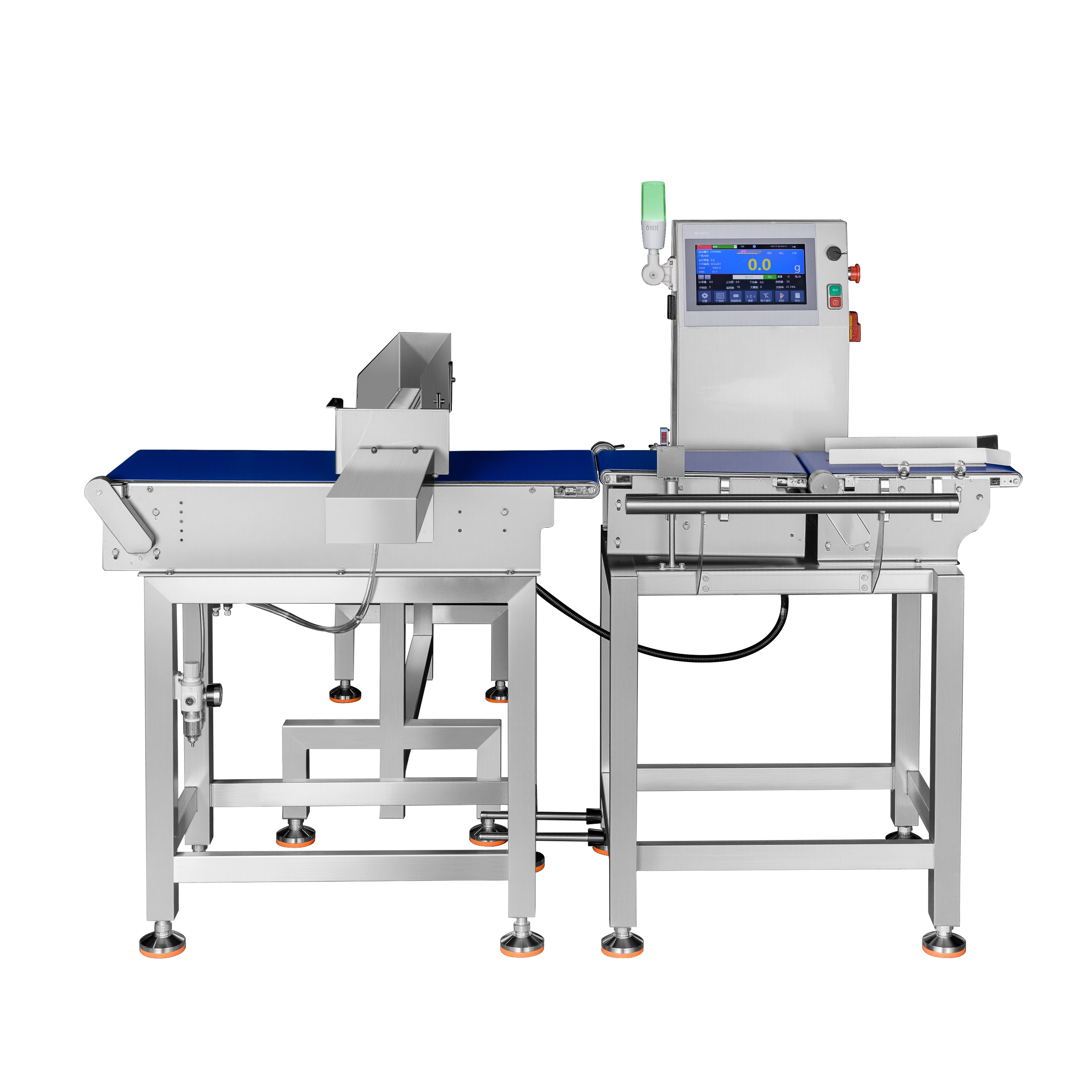 Чеквейер — это встроенное решение для взвешивания, предназначенное для автоматического контроля веса продукта во время его движения по конвейерной ленте. Сравнивая фактический вес каждого продукта с заданными целевыми значениями и допусками, чеквейер определяет продукты с недостаточным и избыточным весом в режиме реального времени и удаляет их из производственного потока, не прерывая скорость линии. Используется для обнаружения переполненных и недостаточно наполненных продуктов, таких как бутылки, консервы и бочонки, в пищевой, фармацевтической, медицинской, химической, пластмассовой, электронной и т. д.